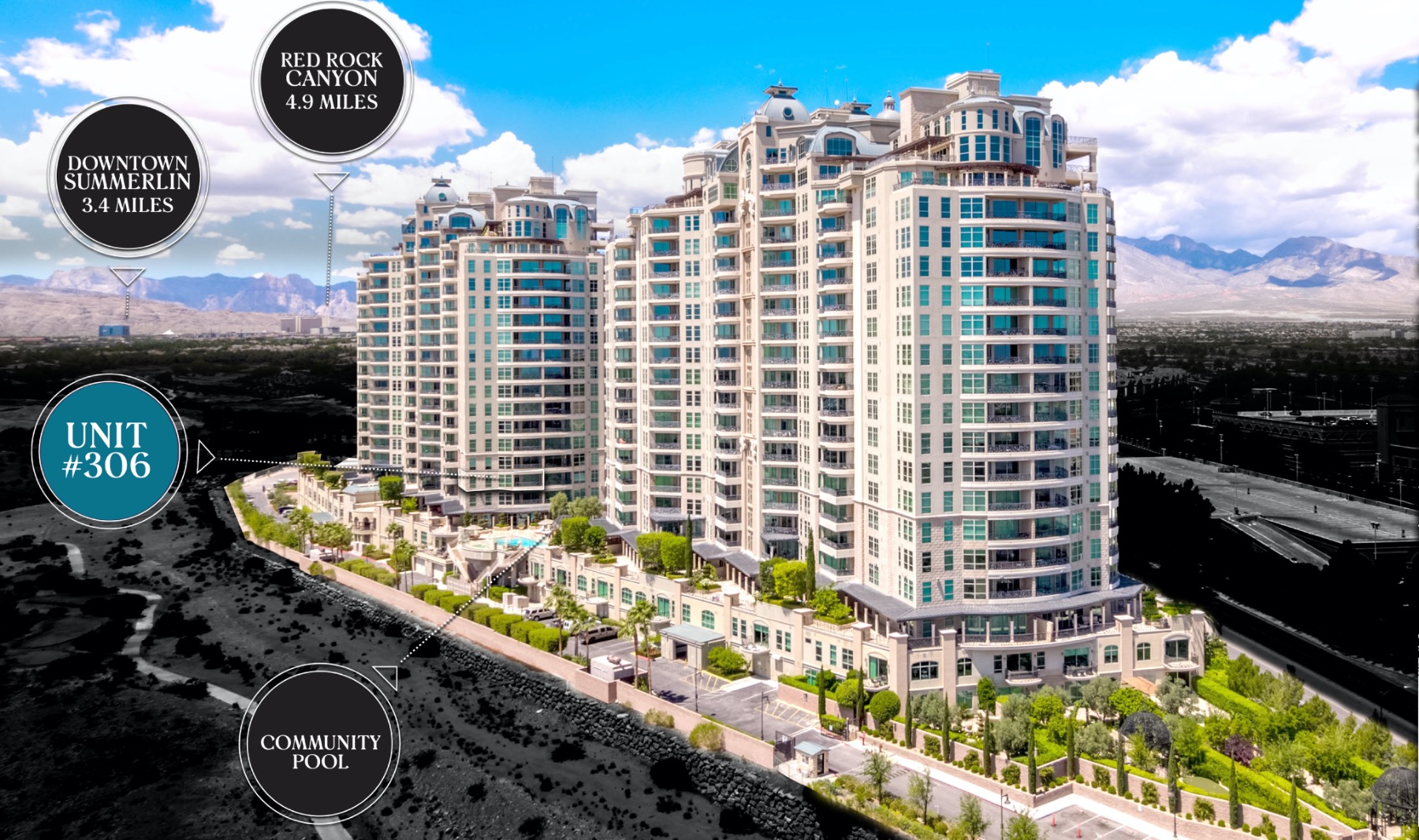 Sophisticated high rise living at One Queensridge Place, the only luxury condo in suburban Las Vegas! This upgraded unit offers direct Strip views, an amazing master suite with an oversized custom closet, a guest suite, den, office, and a gourmet kitchen that includes all Viking appliances.